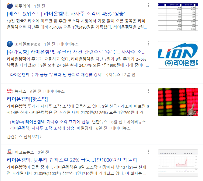 상한가 및 급등 종목