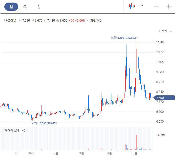 23년 5월 4일 목요일 -4.76% 10400원