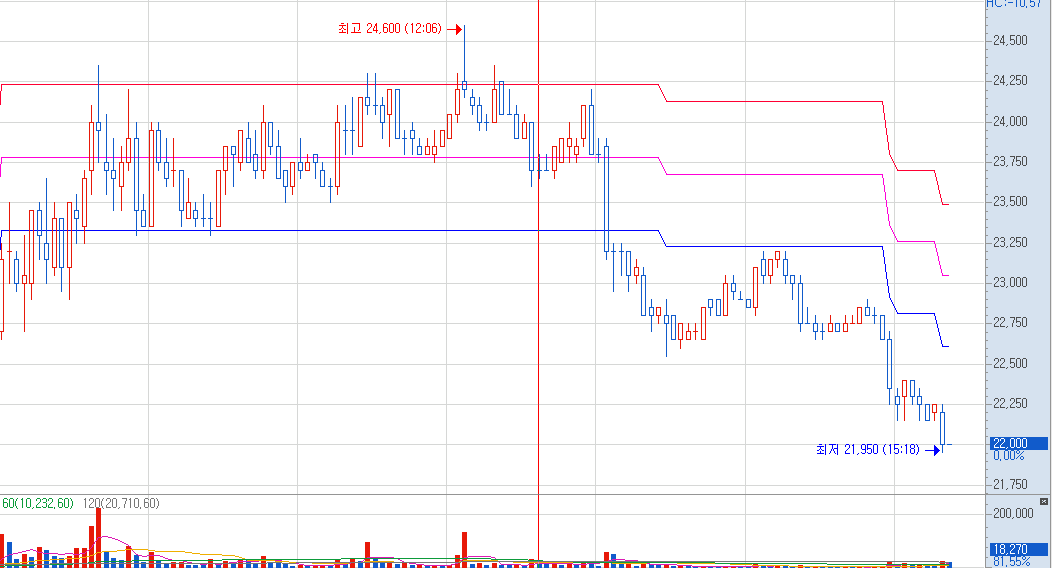 내일 부터는 하락으로 접어 들지 않을까?