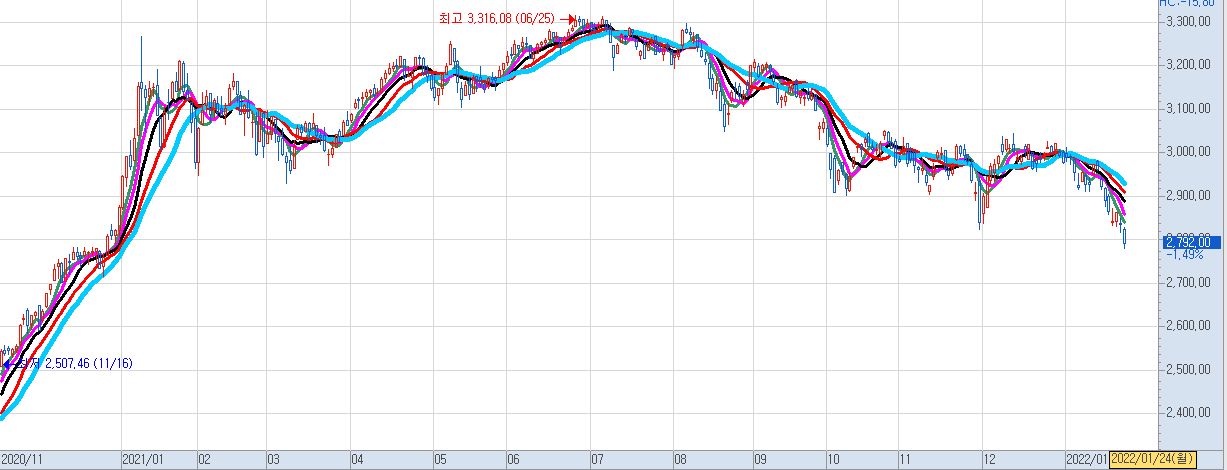 내일 부터는 하락으로 접어 들지 않을까?