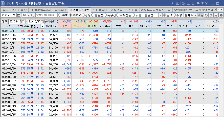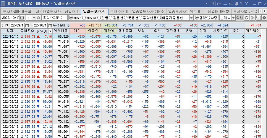 2022년 10월 17일 지수 및 매매 동향 본문