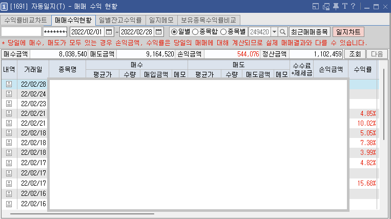 2022년 2월 1일 ~ 28일 매매 수익 정리 본문