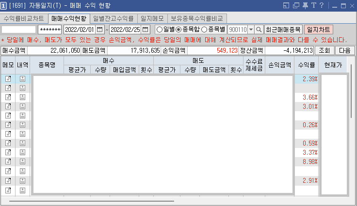 매일 같이 매수를 하고 매도를 해 보고 있다