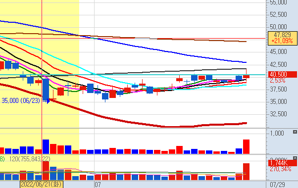 현대에너지솔루션 주가가 가파른 상승세를 기록 중이다.29일 오전 10시 18분 기준 현대에너지솔루션은 전 거래일 대비 21.32% 오른 4만 9500원에 거래되고 있다.전날 현대에너지솔루션은 올해 2분기
