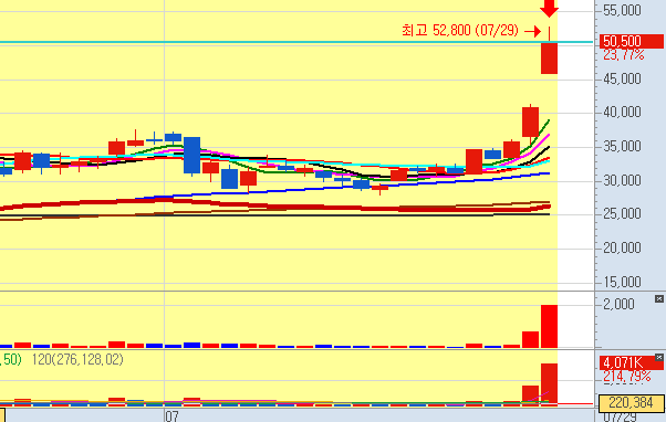 현대에너지솔루션 주가가 가파른 상승세를 기록 중이다.29일 오전 10시 18분 기준 현대에너지솔루션은 전 거래일 대비 21.32% 오른 4만 9500원에 거래되고 있다.전날 현대에너지솔루션은 올해 2분기