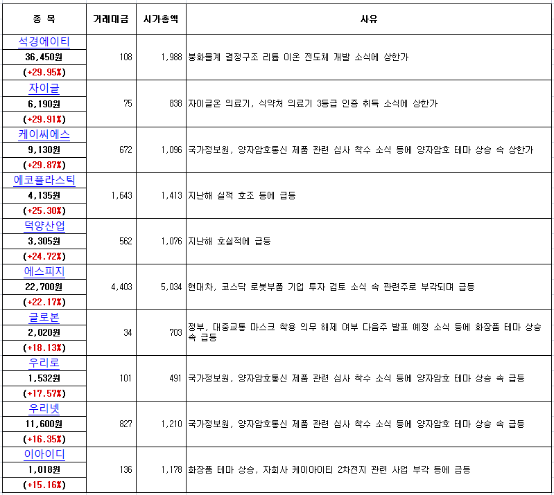 #석경에이티 #자이글 #케이씨에스 #에코플라스틱 #덕양산업 #에스피지 #글로본 #우리로 #우리넷 #이아이디 ...
