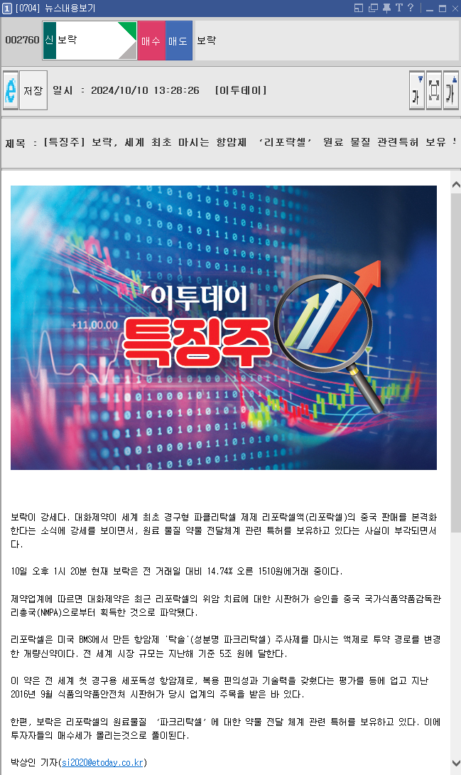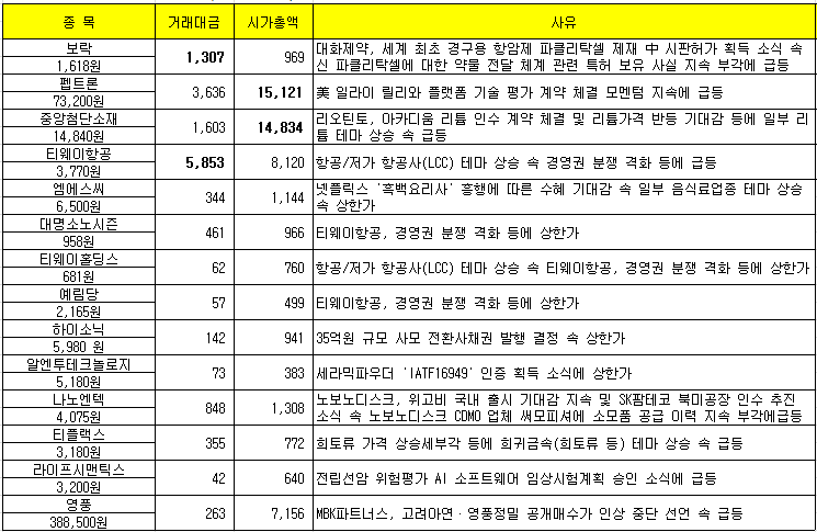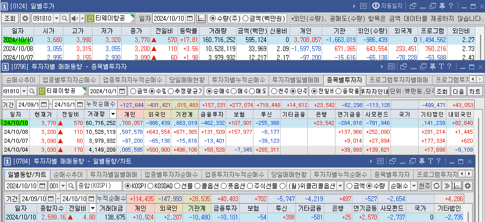 2024년 10월 11일 보락 펩트론 중앙첨단소재 티웨이항공 본문