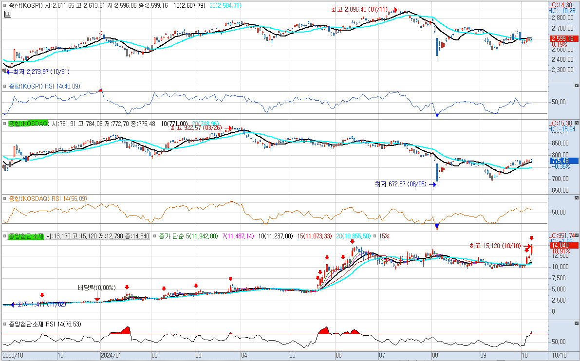 2024년 10월 10일 목요일 지수 마감