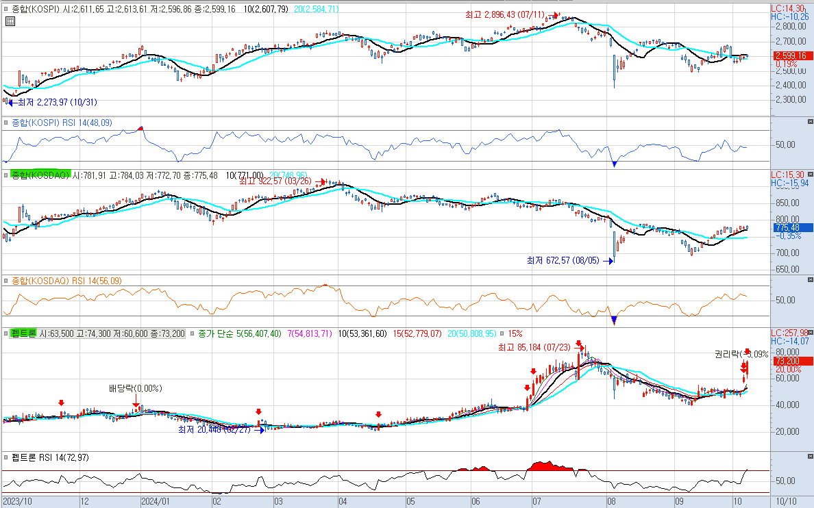 2024년 10월 10일 목요일 지수 마감