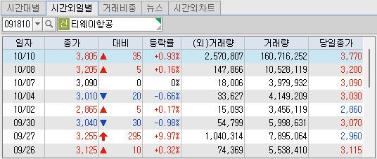 2024년 10월 11일 보락 펩트론 중앙첨단소재 티웨이항공 본문