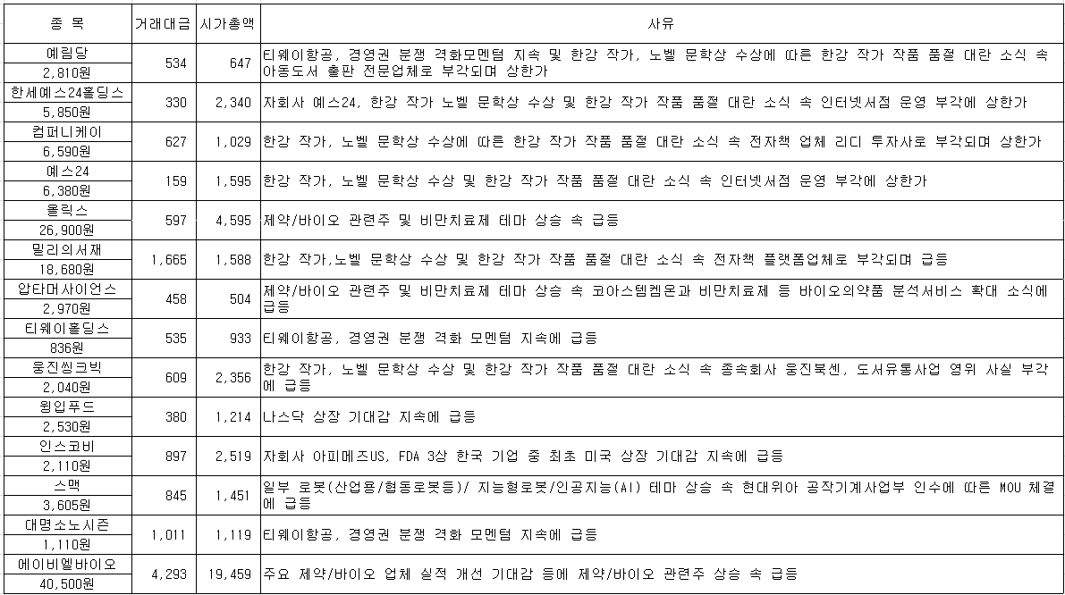 #엠에스씨 #대명소노시즌 #티웨이홀딩스 #예림당 #하이소닉 #알엔투테크놀로지 #보락 #나노엔텍 #펩트론 #...