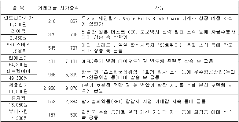 #린드먼아시아 #라이콤 #와이즈버즈 #티에스이 #쎄트렉아이 #제룡전기 #퓨처켐 #뷰티스킨