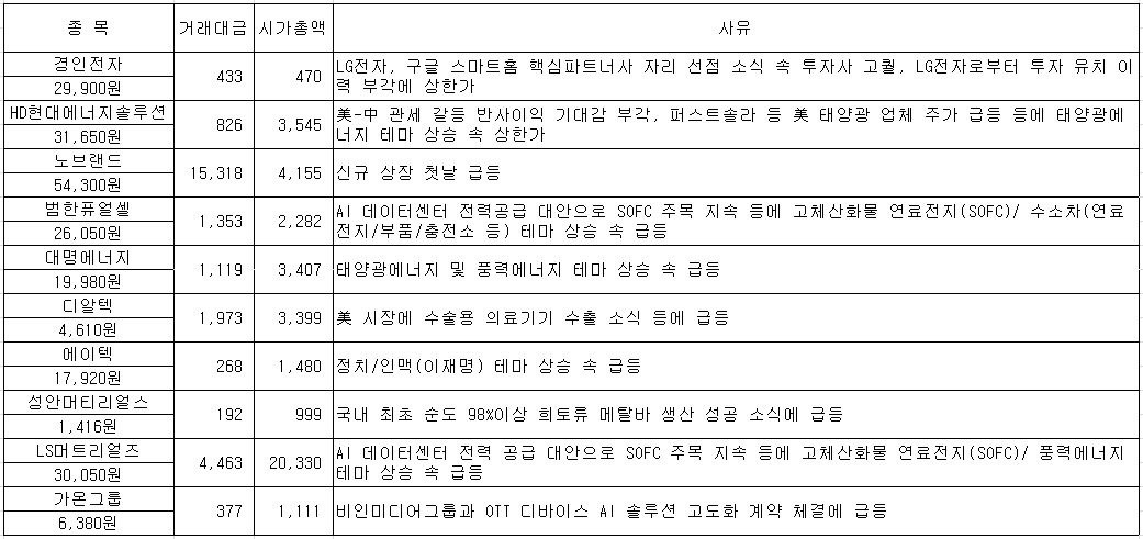 #경인전자 #HD현대에너지솔루션 #노브랜드 #범한퓨얼셀 #대명에너지 #디알텍 #에이텍 #성안머티리얼스 #...