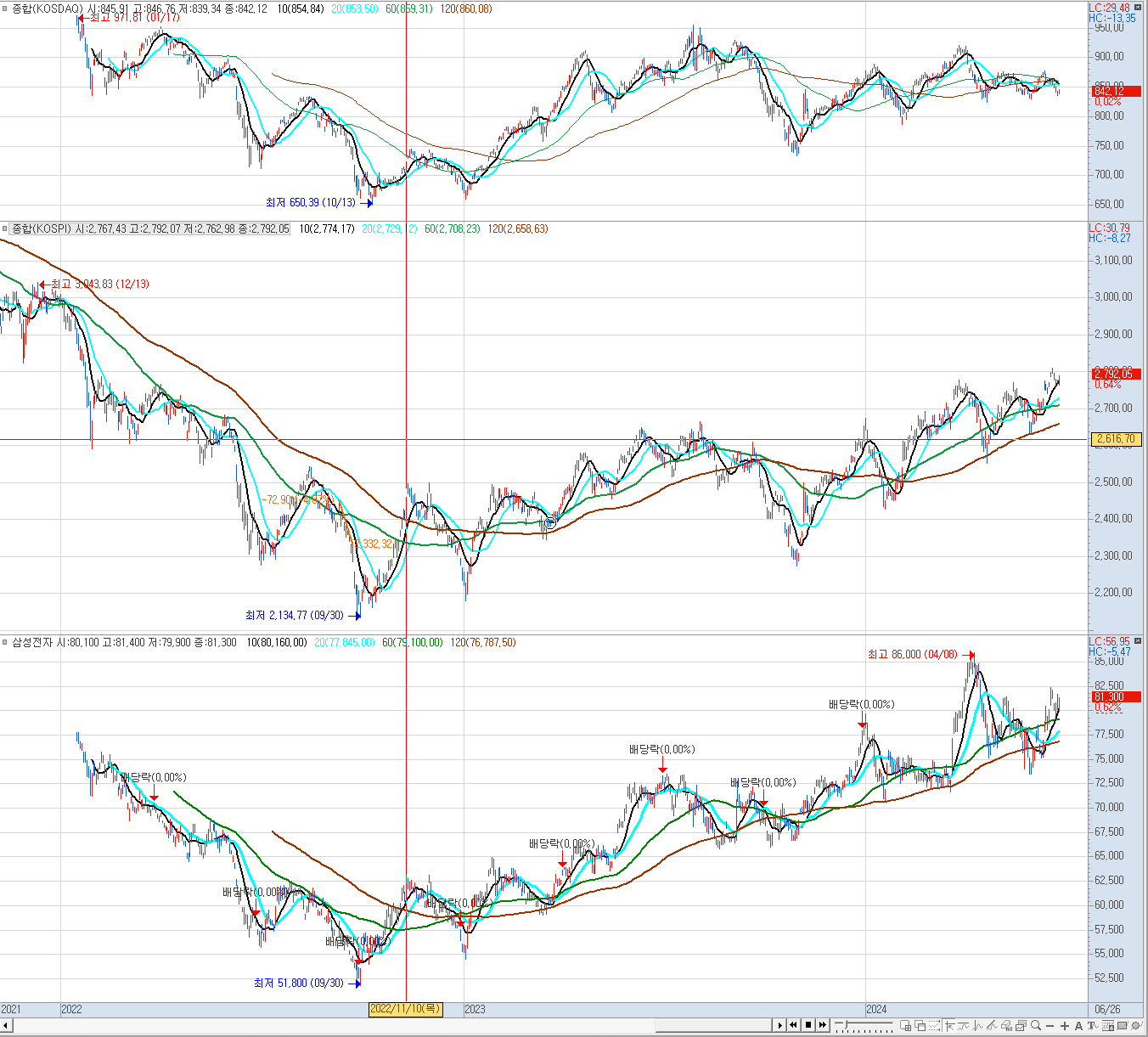 장은 하락장의 느낌에서 오늘은 조금의 상승을 주는 느낌.