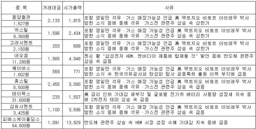 #한국석유 #동양철관 #화성밸브 #씨싸이트 #동양에스텍 #에이팩트 #에이비온 #모나리자 #삼성공조 #인벤티...
