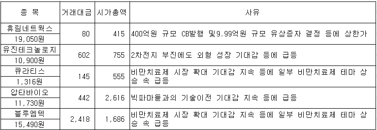 #휴림네트웍스 #인벤티지랩 #솔루스첨단소재 #SG글로벌 #블루엠텍 #펩트론 #램테크놀로지 #오킨스전자 #...