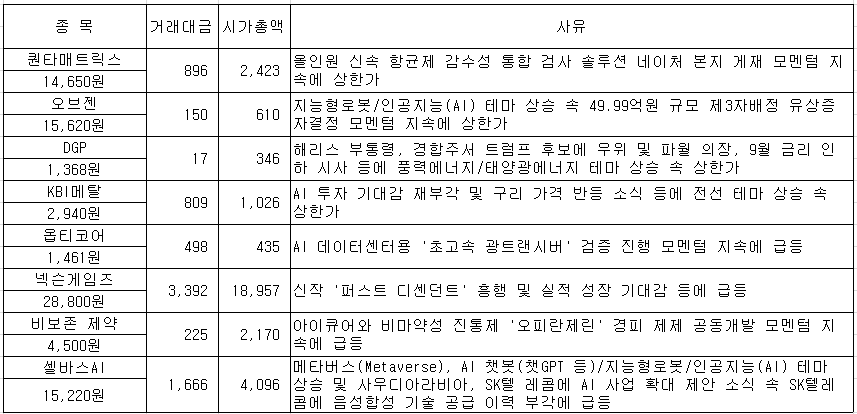 #퀀타매트릭스 #흥구석유 #하츠 #한국석유 #이화공영 #STX그린로지스 #진원생명과학 #중앙에너비스 #수...