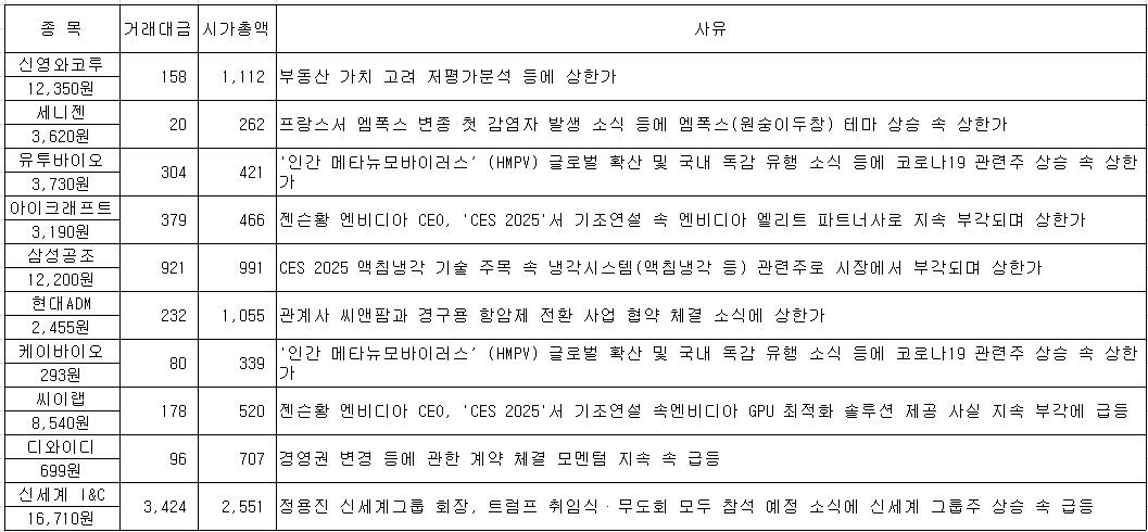 2025년 1월 9일 관심 종목 본문