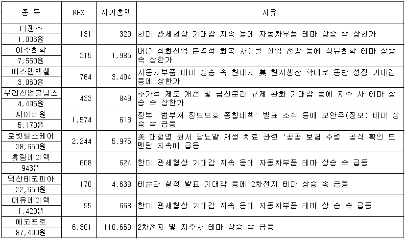 한국첨단소재 재영솔루텍 현대로템 케이프 싸이버원 로킷헬스케어