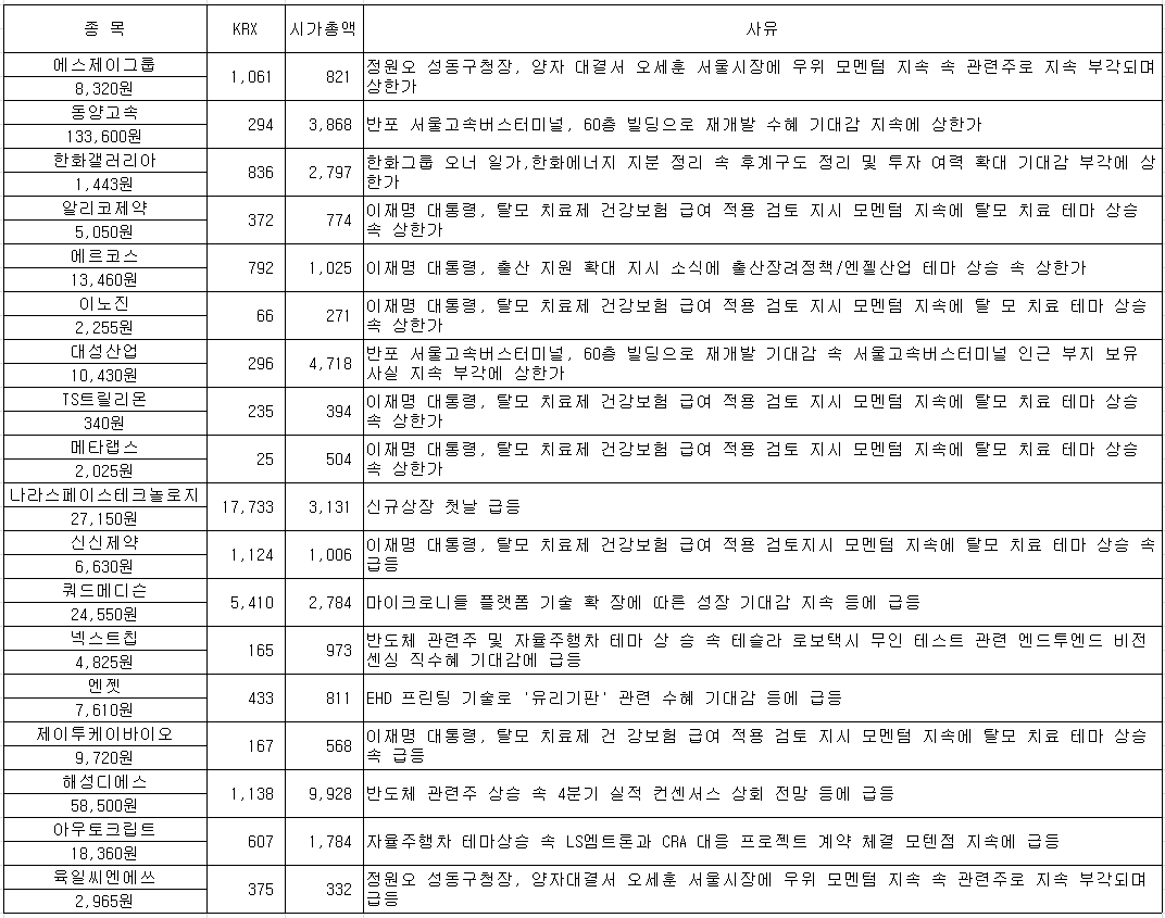 #동양고속 #에스제이그룹 #티엠시 #위더스제약 #나노팀 #아이진 #아크릴 #메지온 #이엔셀 #JW신약 #쿼드...