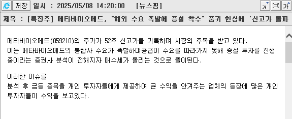 2025년 5월 9일 관심 종목