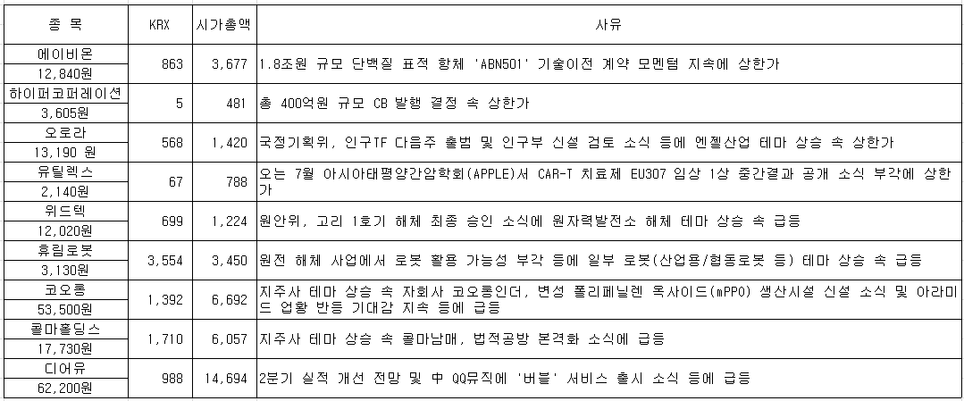 #브릿지바이오테라퓨틱스 #에이비온 #텔콘RF제약 #엔비티 #하이퍼코퍼레이션 #자이글 #이연제약 #오가노...