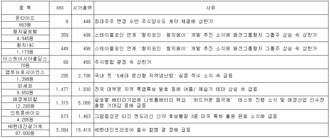 #하이퍼코퍼레이션 #HS효성 #다날 #브릿지바이오테라퓨틱스 #크라운해태홀딩스 #피코그램 #원익 #CSA...