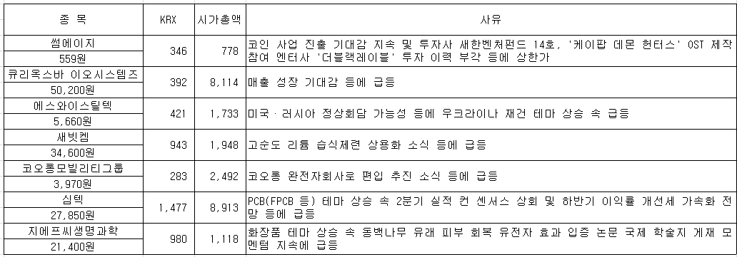 #동일스틸럭스 #빌리언스 #엔투텍 #아이티켐 #오리엔탈정공 #HJ중공업 #삼기에너지솔루션즈 #세명전기