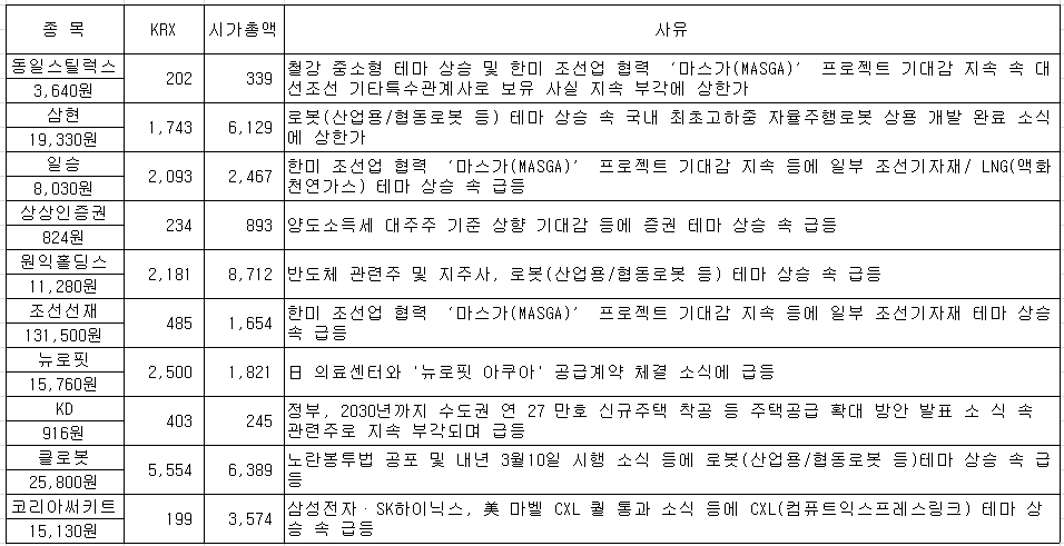 #동일스틸럭스 #KD #화슬알앤에이 #씨피시스템 #오리엔탈정공 #한라IMS #세진중공업 #메타바이오메드 ...
