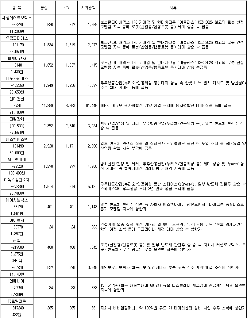 2026년 1월 13일 관심 종목 본문
