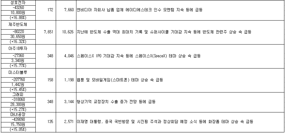 #원익 #성문전자 #제이엔비 #아미노로직스 #엘케이켐 #상지건설 #제주반도체