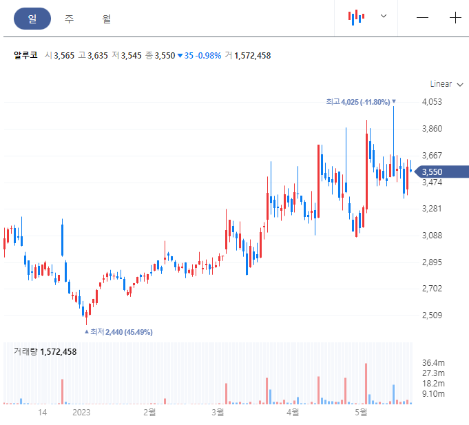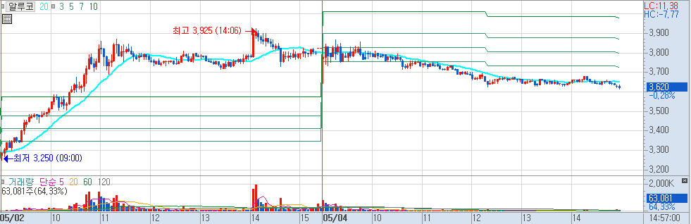 일봉이 이쁘지 않아서 무리 해서 매수할 필요가 없는 종목으로 보인다.