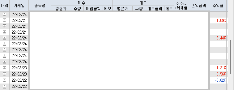 2022년 2월 1일 ~ 28일 매매 수익 정리