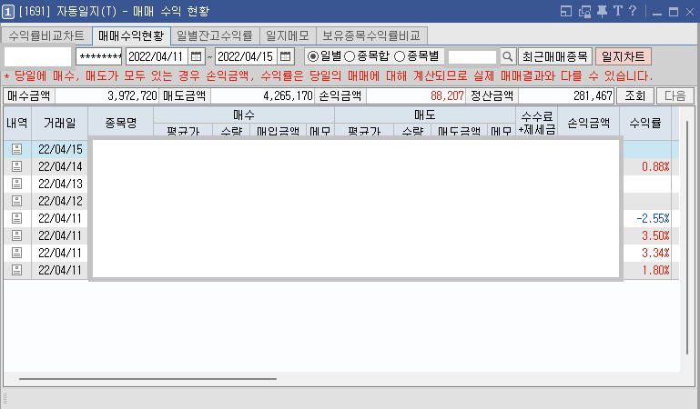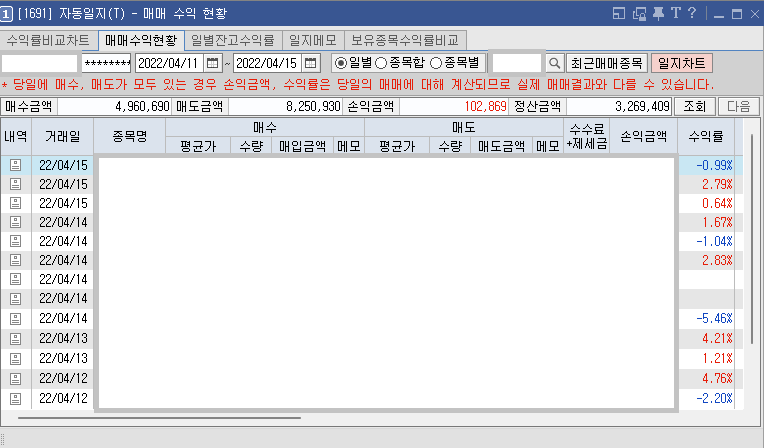 손실 난 종목으로 대체 정리를 했다