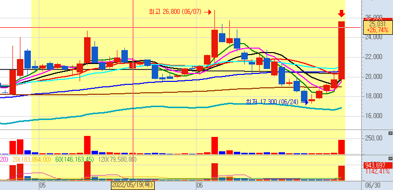 남광토건 주가가 상한가로 치솟았다.30일 오후 1시 45분 기준 남광토건은 전 거래일 대비 29.88% 상승한 1만 2300원에 거래되고 있다.지난 14일 공시를 통해 남광토건은 유성산업개발과 경기도 오산