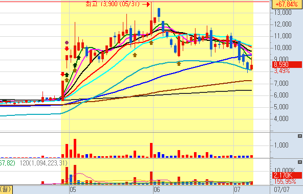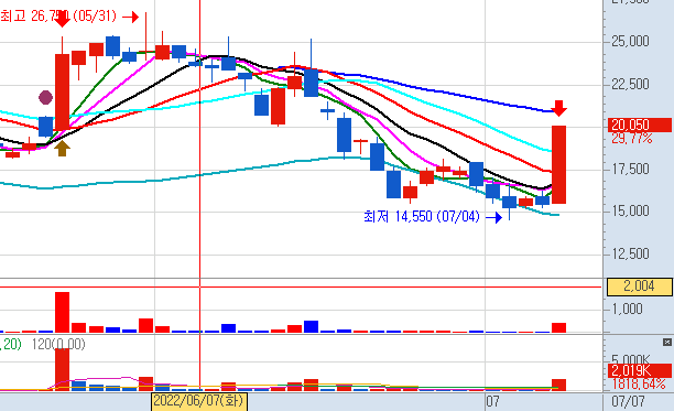 무상증자 호재로 급등하던 일부 종목들이 부진한 양상으로 급변하고 있다. 7일 케이옥션은 전 거래일 대비 7.86% 하락한 1만2900원에 장을 마감했다. 이날 장 초반 23.6%(3300원) 올라 1만7300원까지 급