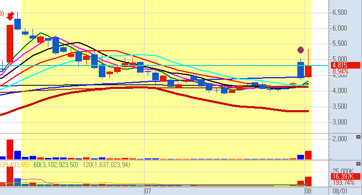 5. 대명에너지: 시가총액 3,349억, 거래대금 798억