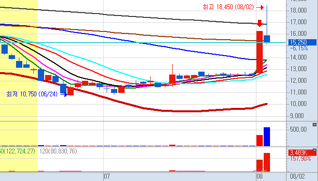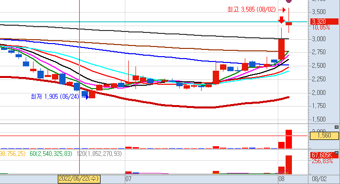 5. 웰크론한텍 : 시가총액 858억, 거래대금 406억
