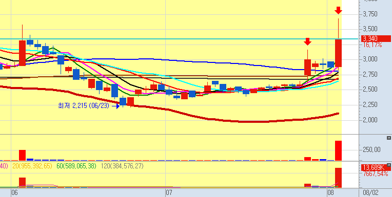 [핀포인트뉴스 이경선 기자] 화천기계 주가가 치솟고 있다.2일 한국거래소에 따르면 이날 오후 1시 2분 현재 20.52% 올라 3465원에 거래되고 있다.주가는 횡보중 급상승 반전을 노리고 있다.기관은 4