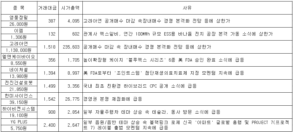 #아이큐어 #네이처쎌 #프레스티지바이오파마 #샤페론 #특수건설 #삼기이브이 #한일단조