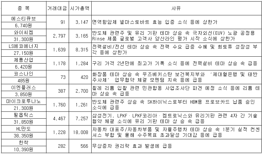 #에스티큐브 #와이씨켐 #LS에코에너지 #제룡산업 #코스나인 #이엔플러스 #마이크로투나노 #필옵틱스 #H...