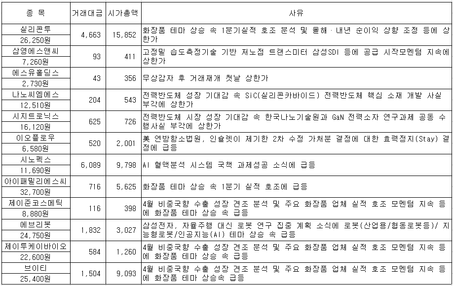 #실리콘투 #삼영에스앤씨 #에스유홀딩스 #나노씨엠에스 #시지트로닉스 #이오플로우 #시노펙스 #아이패밀리...