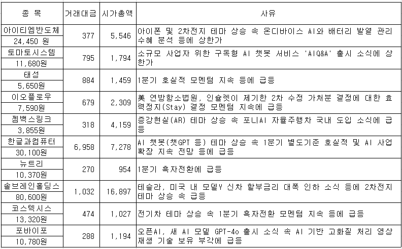 #아이티엠반도체 #토마토시스템 #태성 #이오플로우 #젬백스링크 #한글과컴퓨터 #뉴트리 #솔브레인홀딩스 #...