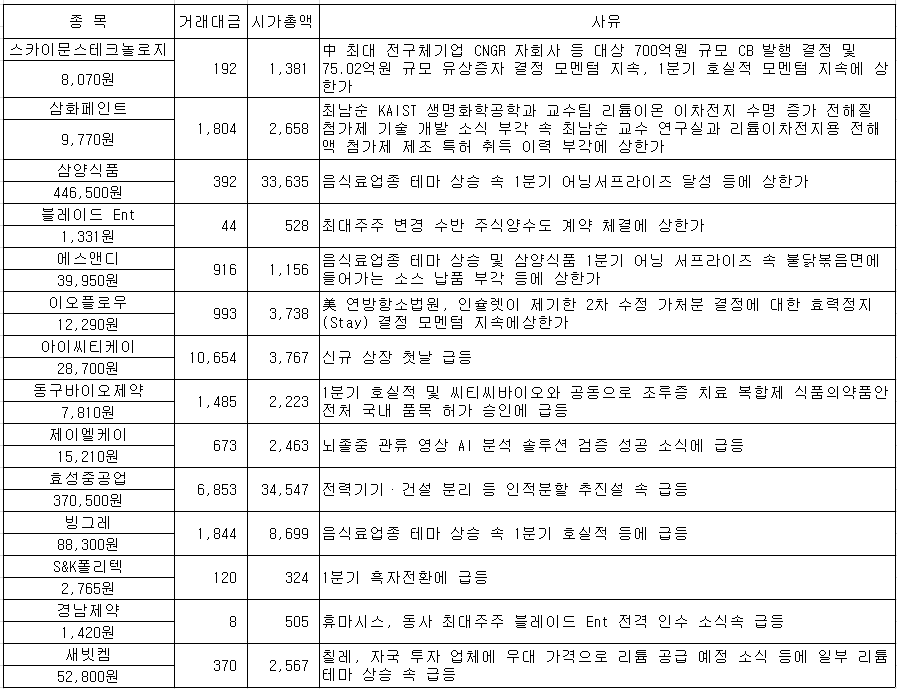 #스카이문스테크놀로지 #삼화페인트 #삼양식품 #블레이드 Ent #에스앤디 #이오플로우 #아이씨티케이 #동구...