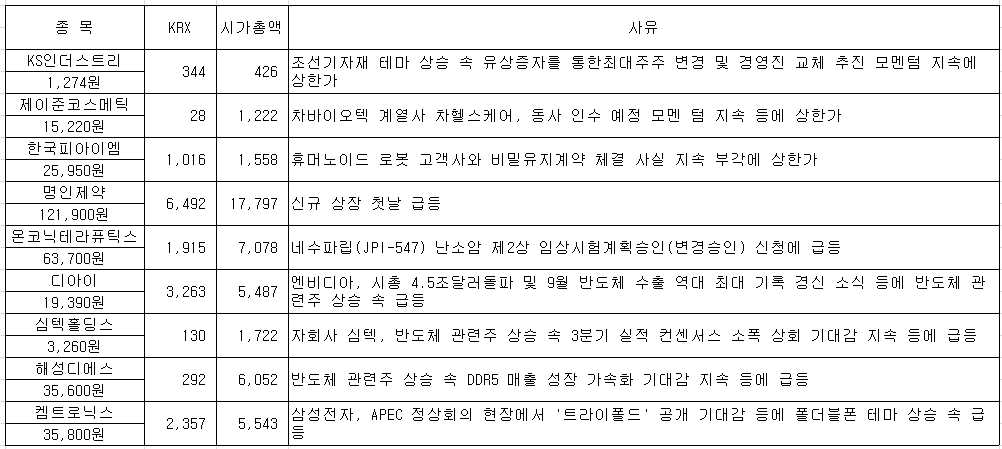 #일정실업 #제이준코스메틱 #KS인더스트리 #애머릿지 #라메디텍 #에프엔에스테크 #오성첨단소재 #이뮨온...