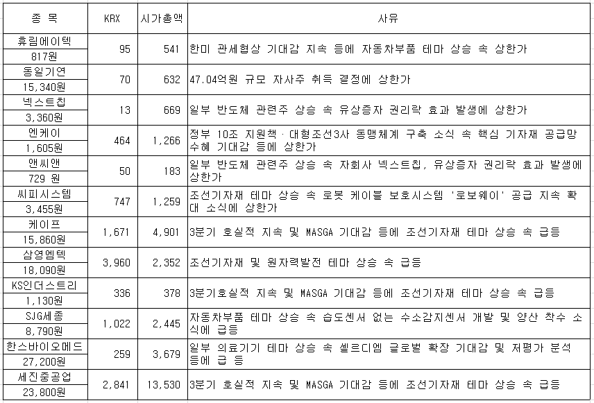 삼영엠텍 세진중공업 일승 제닉스로보틱스 씨피시스템 지투지바이오