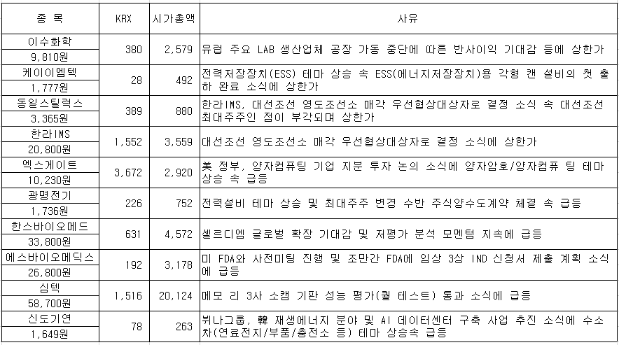 #디젠스 #이수화학 #에스엠벡셀 #우리산업홀딩스 #싸이버원 #로킷헬스케어 #휴림에이텍 #덕산테코피아 #대...