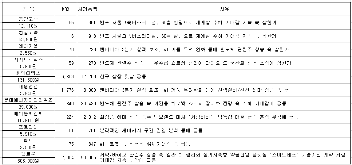 #한성기업 #천일고속 #동양고속 #조이시티 #에스피지 #동원수산