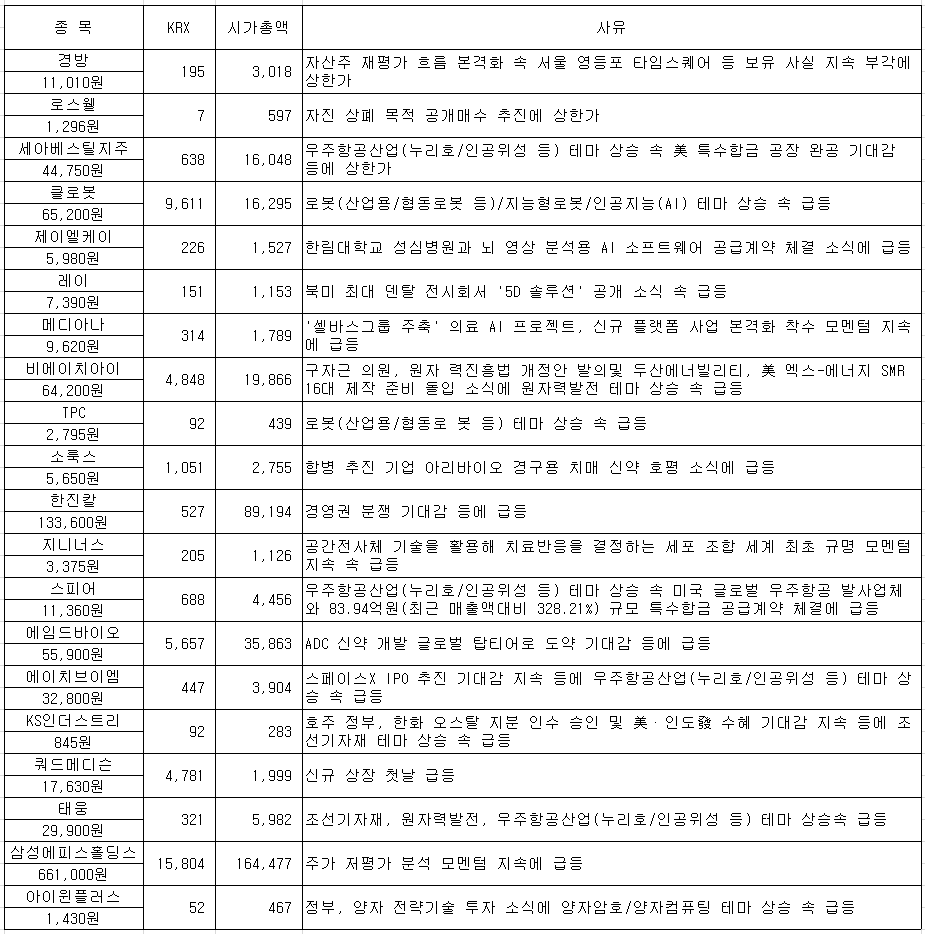 #동양고속 #신원종합개발 #유디엠텍 #하림지주 #대성산업 #삼표시멘트 #파라택시스코리아 #이지스 #천일고...