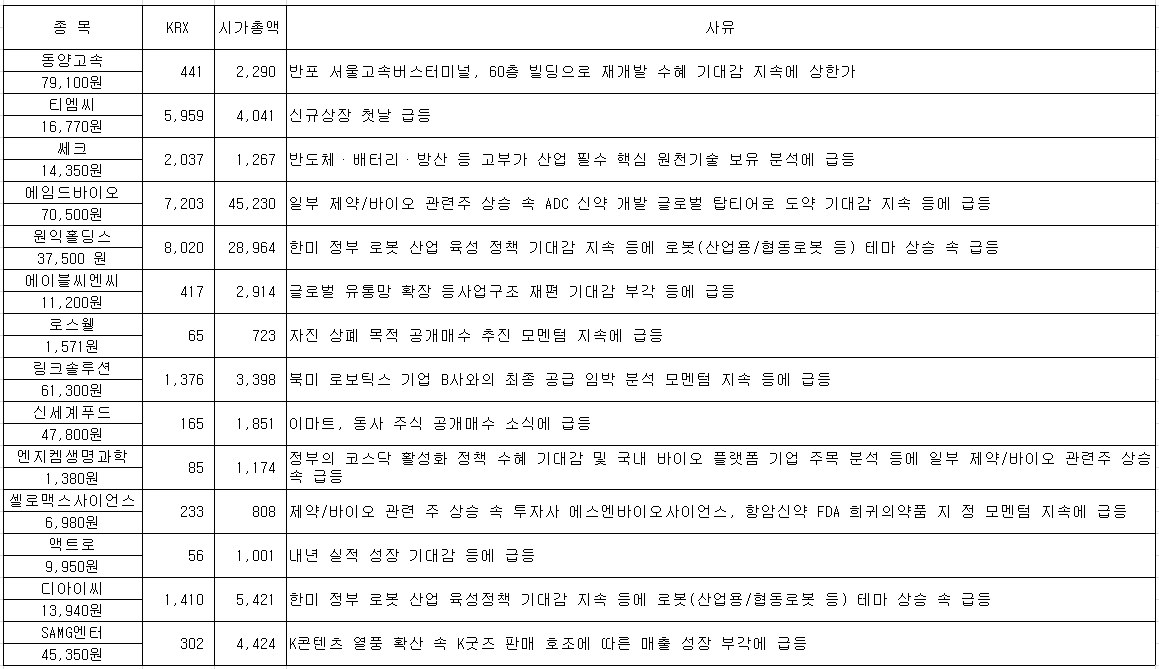 #경방 #로스웰 #세아베스틸지주 #클로봇 #제이엘케이 #레이 #메디아나 #비에이치아이 #TPC #소룩스 #한...